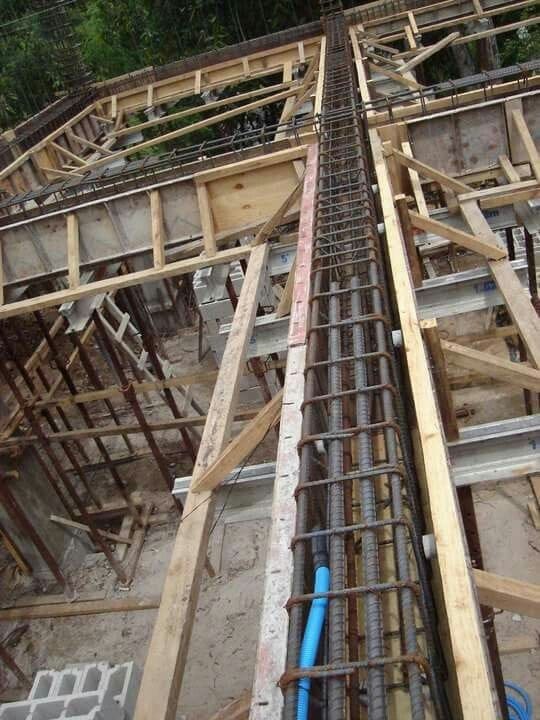 Aplicação: Usadas em todos os tipos de construção, desde casas até edifícios de grande porte. As vigas recebem e distribuem as cargas provenientes das lajes e paredes, transmitindo-as para as colunas e fundações.